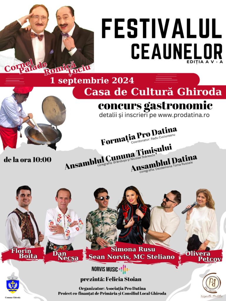 Toate acestea şi nu numai, vor face ca fiecare dintre cei prezenți să uite de diete, la cea de-a V-a ediție a Festivalului Ceaunelor, organizat de Pro Datina, în colaborare cu Primăria și Consiliul Local Ghiroda.