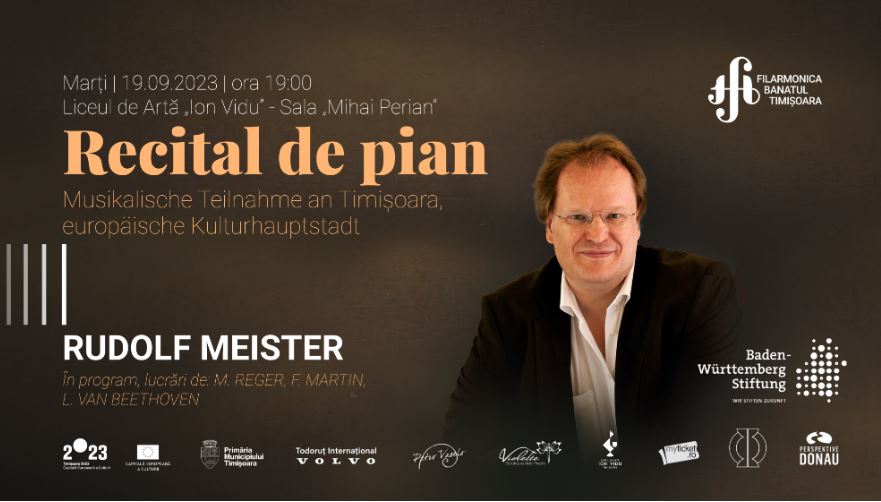 Filarmonica Banatul Timișoara, în colaborare cu Asociația A. I. CUZA – Gesellschaft für Literatur, Musik und Kunst e. V. Heidelberg invită timișorenii să ia parte la un recital de pian susținut de Rudolf Meister.