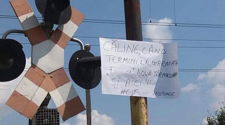 El a lipit o hârtie pe care a scris: “Căline, când termini la Giarmata f*** două târnăcoape aici. #CJT Mulțumesc!”.