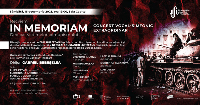 Pentru acest eveniment, Filarmonica Banatul Timișoara a comisionat un Requiem colectiv în memoria victimelor comunismului și Revoluției din ’89.
