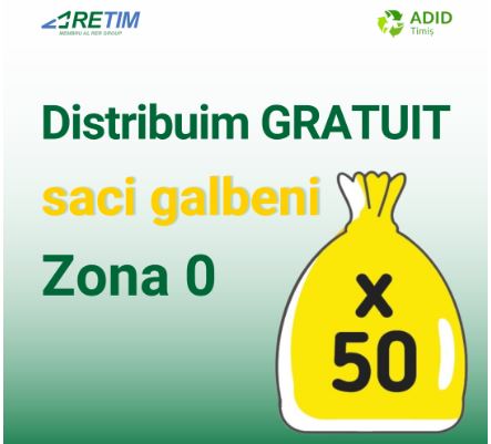 Retim anunță programul de distribuție gratuită a sacilor galbeni destinați colectării deșeurilor reciclabile în Zona 0!