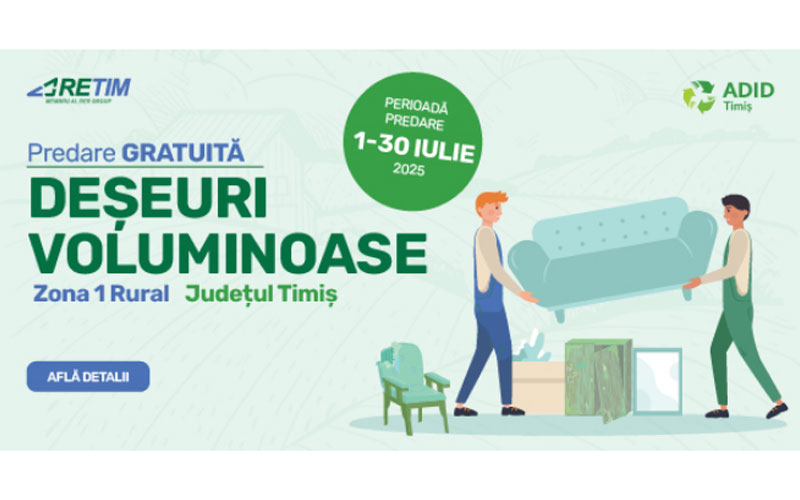 În perioada 01 – 30 iulie 2025, în Zona 1 Rural a județului Timiș, RETIM Ecologic Service S.A. împreună cu ADID Timiș, organizează cea de-a treia campanie de predare gratuită a deșeurilor voluminoase.