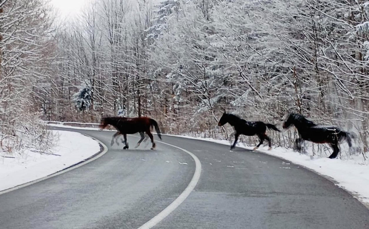 Caii sălbăticiți din Munții Banatului și-au făcut din nou apariția, în plină iarnă, după ce o bună perioadă de timp au stat departe de ochii curioșilor.