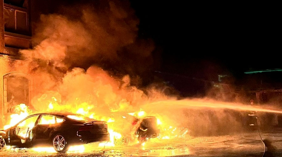 Trei mașini au fost complet distruse urma unui incendiu de amploare, care s-a propagat cu repeziciune şi ameninţa să cuprindă o clădire aflată la doar jumătate de metri şi apoi să se extindă şi la altele.