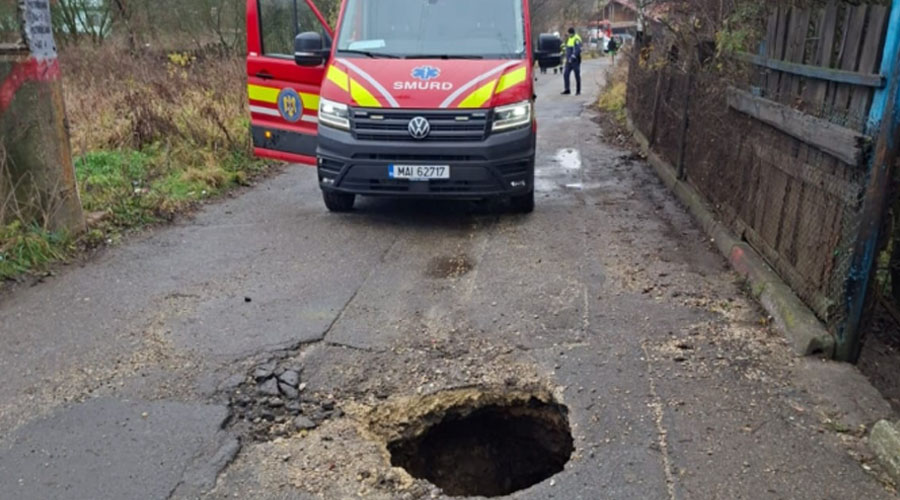 Incident grav, astăzi, când asfaltul s-a surpat în mijlocul unei șosele, iar doi oameni au căzut în groapa formată.