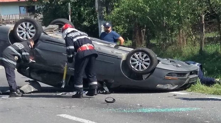 S-au dat cu mașina peste cap după ce a lovit un cap de pod! În ce stare sunt pasagerii?