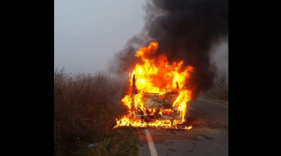 S-a dat alarma în această dimineață, după ce un microbuz a luat foc în mers.
