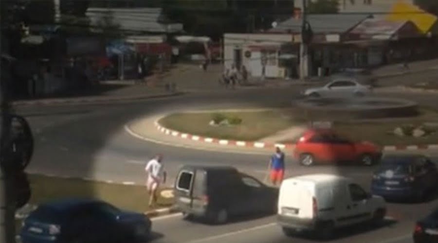 A fost scandal monstru în trafic. Protagoniștii: doi pietoni, soț și soție, și un șofer.