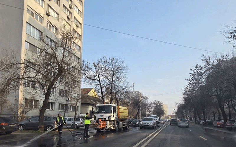 Curățenia stradală are două etape: mai întâi praful și murdăria sunt adunate, apoi arterele sunt spălate cu apă sub presiune, pentru a elimina complet resturile.