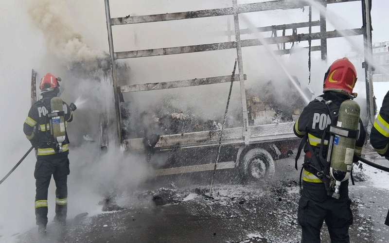 Camionetă mistuită de flăcări! A luat foc în mers