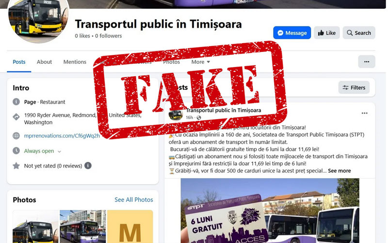 Mai exact, în ultimele zile, pe rețelele de socializare și pe diverse site-uri obscure, au apărut mesaje false, care promit timișorenilor abonamente gratuite sau la prețuri foarte mici, de exemplu, „6 luni de transport public la 11,69 lei”, însoțite de linkuri menite să păcălească utilizatorii.