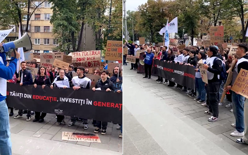 Amintim, studenții sunt revoltați pentru că fondul de burse a scăzut cu 53%, bursele sunt acordate doar pe perioada anului universitar, fără vacanțe, iar reducerea de 90% pentru biletele de tren este acordată limitat, doar pe ruta centru universitar – localitatea de domiciliu.