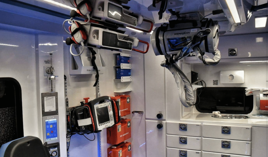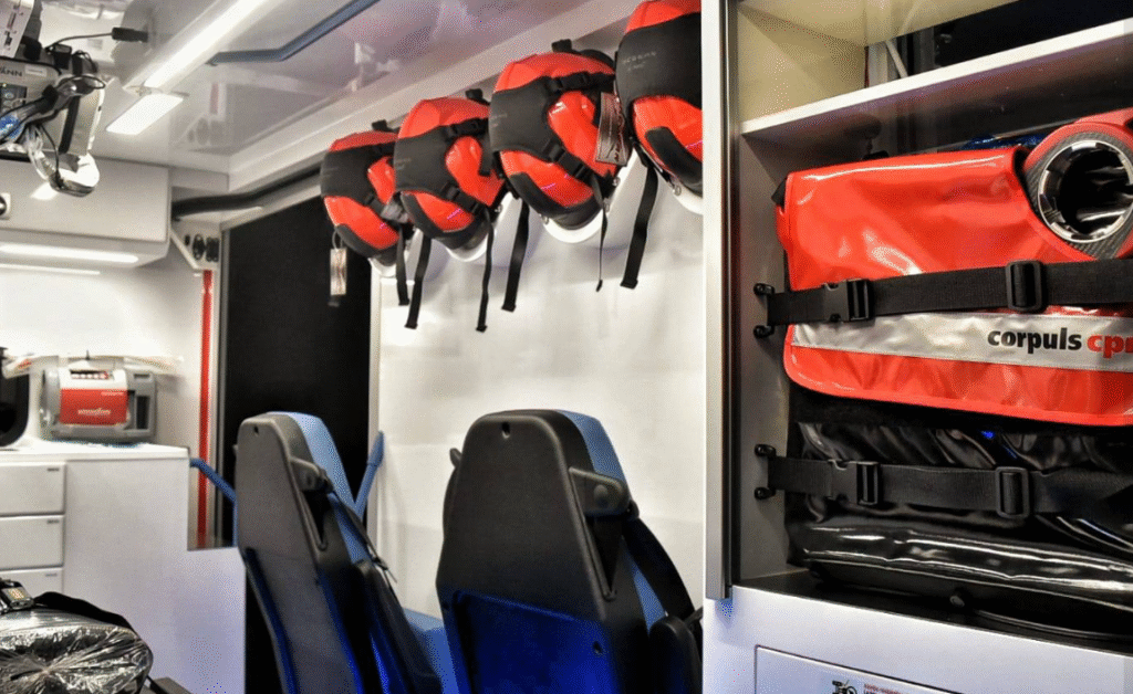 Autosanitara este echipată cu un sistem automat de compresii toracice care asigură un masaj cardiac constant și precis, imposibil de realizat manual (Corpuls CPR). Potrivit ISU Timiș, acest dispozitiv menține eficiența resuscitării chiar și în timpul transportului, crescând considerabil probabilitatea ca pacientul să fie readus la viață în cazurile de stop cardio-respirator.