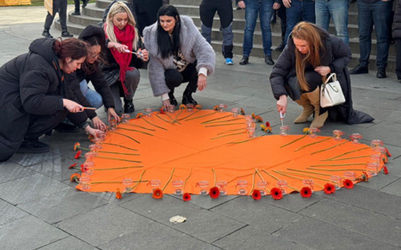 Aici au ținut un moment de reculegere, au aprins lumânări și au depus flori în memoria femeilor ucise în acest an.