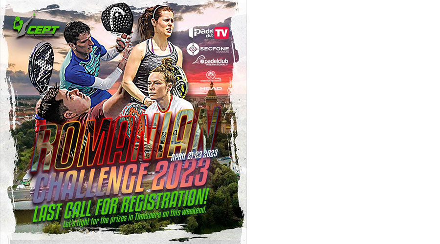 65 de sportivi, băieți și fete, din 12 țări, au răspuns provocării Central European Padel Tour (CEPT), competiție a profesioniștilor din Europa. „Provocarea românească” / Romanian Challenge organizată de Central European Padel Tour se va desfășura în acest sfârșit de săptămână, între 21 și 23 aprilie la baza sportivă Padel Center (Dumbrăvița, strada Praga nr.6).
