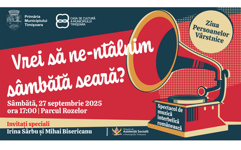 Cei de peste 60 de ani au intrare liberă și își pot ridica invitațiile de la secretariatul Casei de Cultură a Municipiului Timișoara (Str. Miron Costin nr. 2).