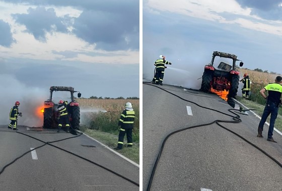 ”Am fost solicitați să intervenim pentru stingerea unui incendiu produs la un tractor, între localitățile Gottlob și Grabaț. Tractorul se afla în mers. La fața locului s-au deplasat două autospeciale de stingere din cadrul Secției Sânnicolau Mare. În sprijin a intervenit Serviciul Voluntar pentru Situații de Urgență Gottlob. În urma incendiului tractorul a ars în proporție de 90%. Din fericire nu s-au înregistrat victime”, transmite IS Banat.