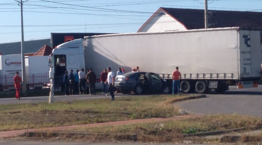 Trafic blocat pe o șosea din vestul țării! O mașină a ajuns sub un tir