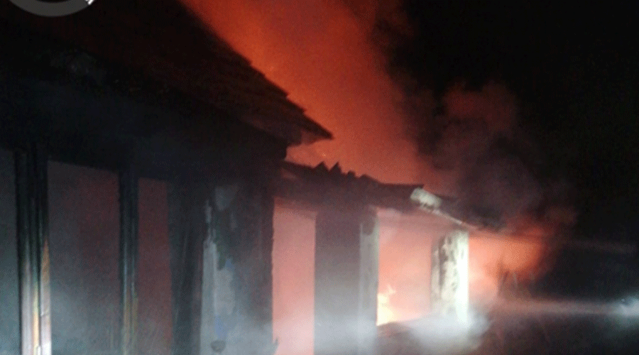 „Incendiul care a cuprins aproximativ 80% din locuință a fost lichidat de pompieri fără a se extinde la celelalte case.