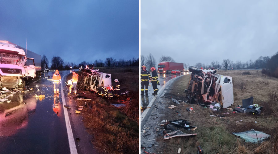 Tragedie, în apropiere de Lugoj! Un tânăr a murit pe loc, după ce a intrat cu camioneta într-un tir!