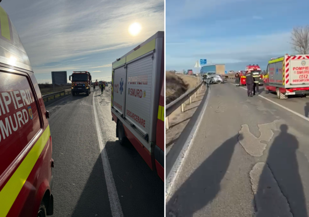 „În data de 05 februarie 2026, în jurul orei 19:20, o femeie de 38 de ani a condus un autoturism pe DN59A dinspre localitatea Jimbolia înspre localitatea Cărpiniș, iar la un moment dat a intrat în coliziune cu un moped pe care se aflau două persoane, respectiv un tânăr de 22 de ani și un bărbat de 46 de ani.
