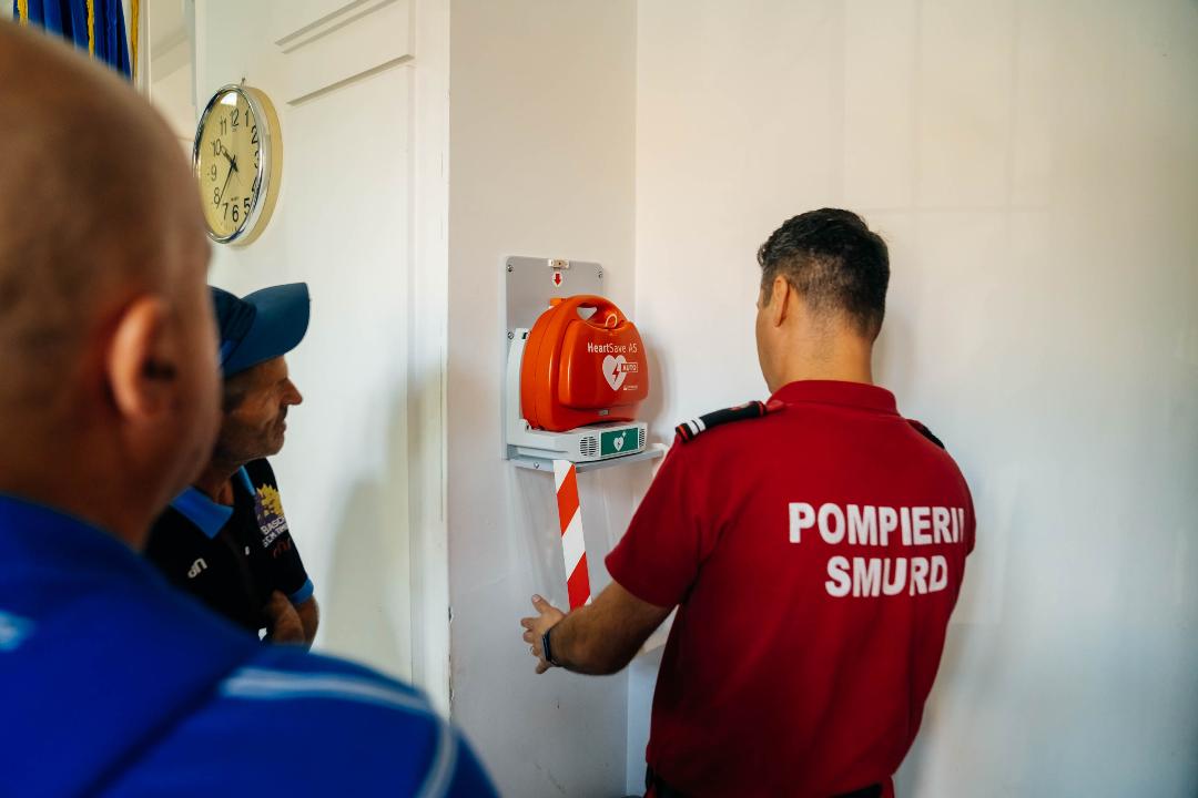 Acțiunea de amplasare a celor trei defibrilatoare se derulează în paralel cu instruirea angajaților pentru intervenții în caz de urgență. Un ofițer de specialitate din cadrul Centrului de formare și pregătire descarcerare și intervenție medicală de urgență al ISU Banat a prezentat modul de funcționare a aparatului și pașii ce trebuie urmați în cazul în care ne confruntăm cu o situație ce reprezintă urgență medicală.
