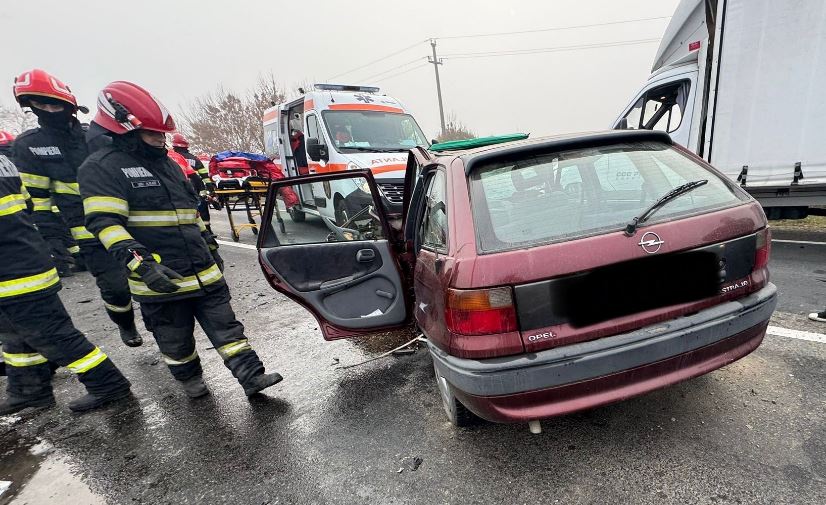 Trei victime, între care una încarcerată, în urma unui accident pe o șosea din vestul țării! Două mașini s-au izbit violent
