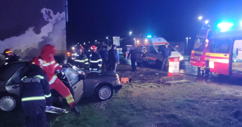 Mai multe echipaje de pompieri, medici şi poliţişti intervin în aceste momente, la locul unui accident rutier grav, n care au fost implicate o maşină şi un autocar.