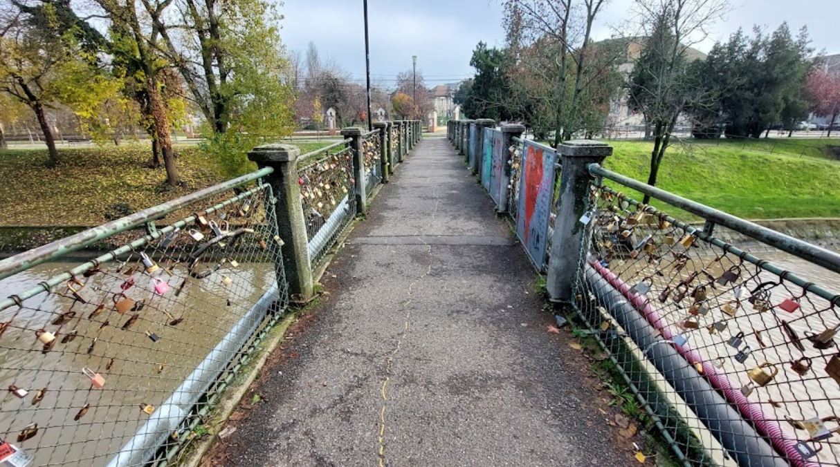 Pasarela Îndrăgostiţilor a fost ridicată peste râul Bega, în anul 1949, iar de atunci nu a fost niciodată reabilitată.