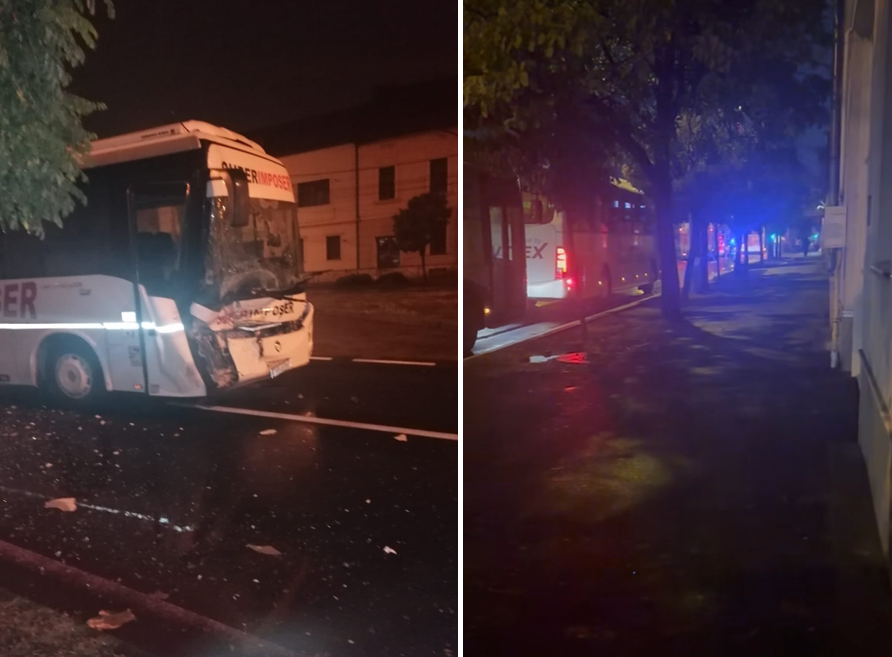 Un autobuz și o autoutilitară s-au ciocnit în zorii zilei de astăzi.