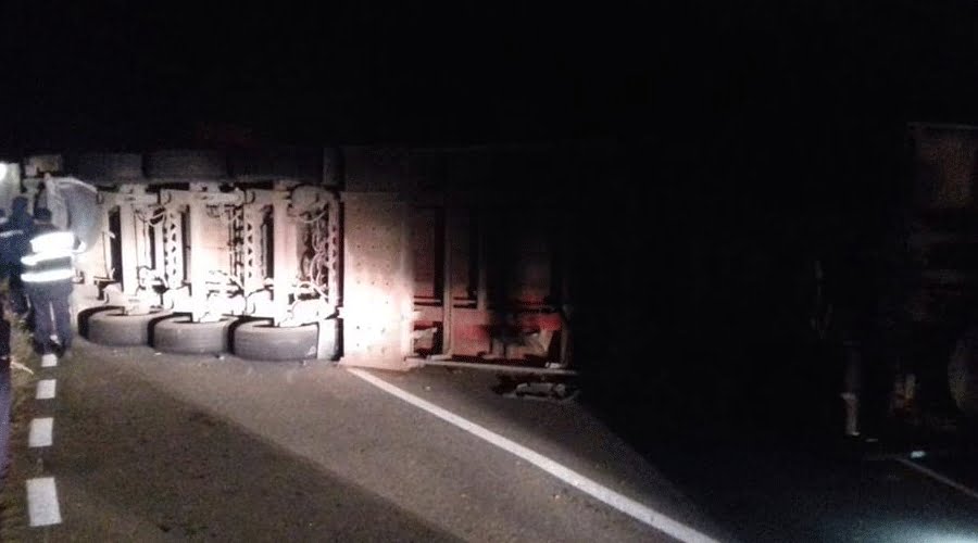 A fost o adevărată desfăşurare de forte azi-noapte, după ce un tir încărcat cu 30 de tone de material lemnos s-a răturnat.