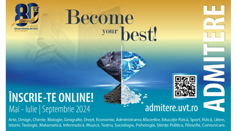Toate informațiile despre procesul de admitere și oportunitățile pe care UVT le oferă sunt disponibile pe site-ul UVT dedicat procesului de admitere – admitere.uvt.ro.