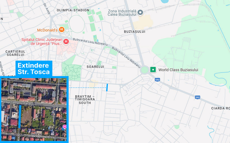 Asta pentru că, Primăria Timișoara va prelungi strada Tosca, cu 100 de metri, pentru a crea o conexiune între strada Mureș și bulevardul Mareșal Constantin Prezan.