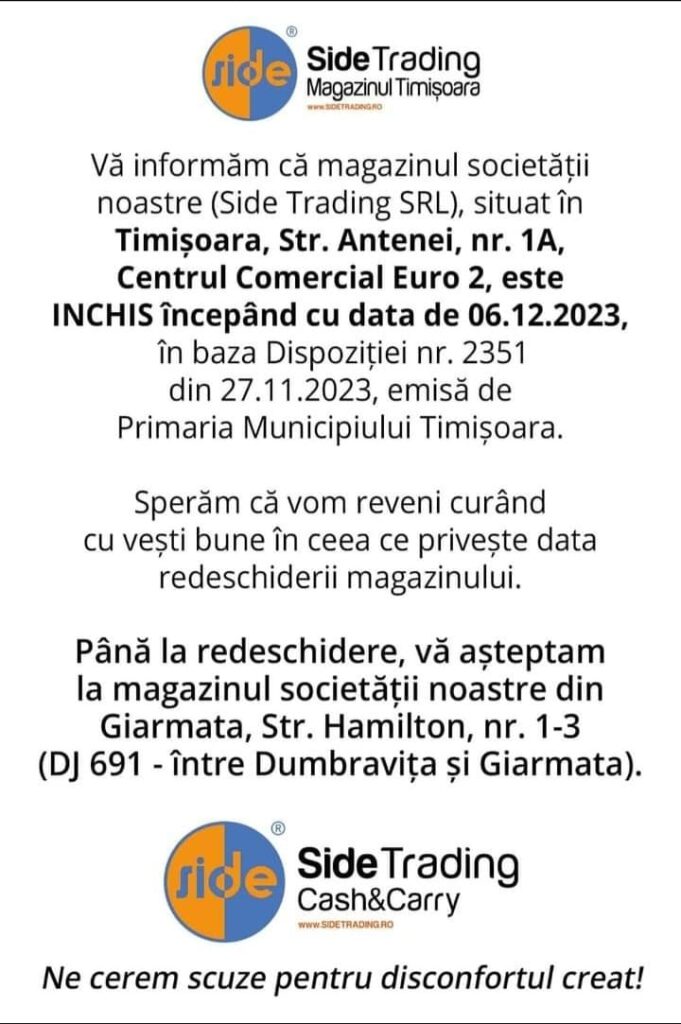 Veste proastă pentru timișoreni! Două magazine cu prețuri mici au fost închise înainte de sărbători