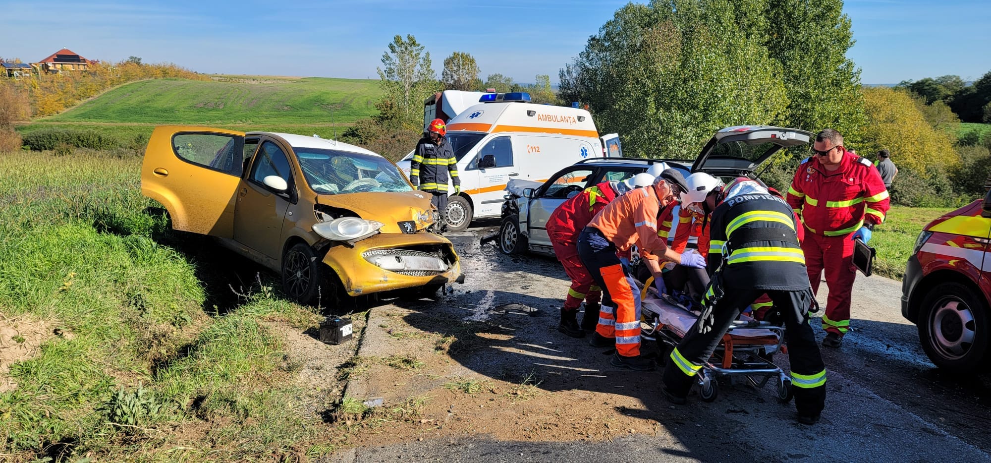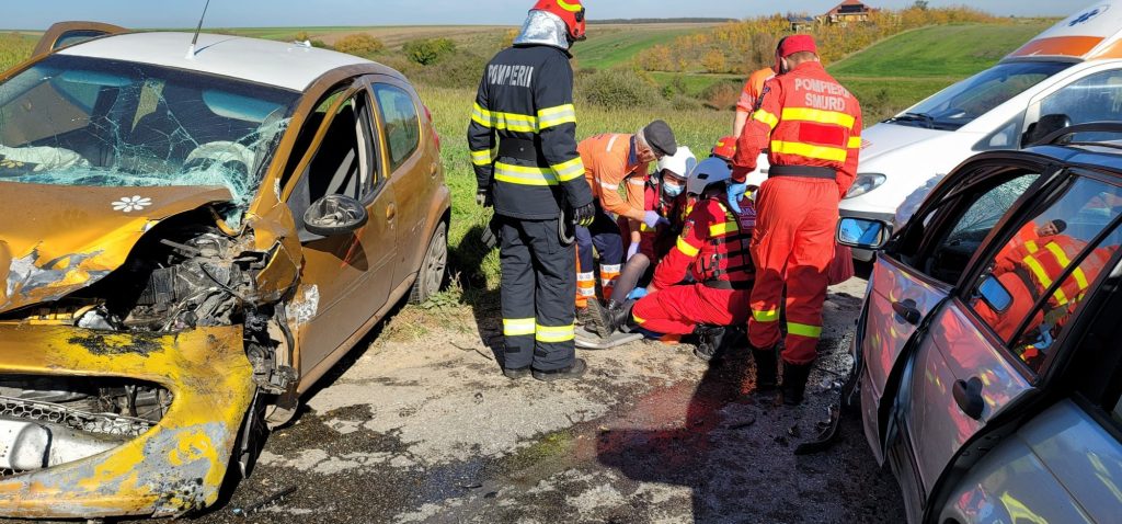 „La fața locului s-au deplasat de urgență 11 pompieri cu o autospecială de stingere cu modul de descarcerare, o autospecială de descarcerare și 2 echipaje SMURD. Pe lângă echipajele de pompieri, la intervenție s-au deplasat o ambulanță S.A.J și echipaj de poliție. Ajunși la locul intervenției, salvatorii au constatat că în accident au fost implicate 2 autoturisme în care se aflau 3 persoane”, transmite ISU Timiş.