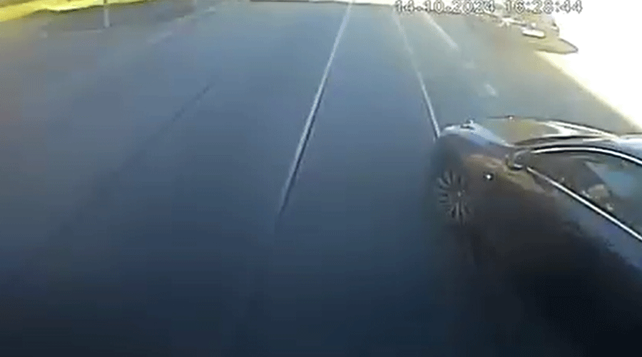 În imagini se vede cum o mașină al cărei conducător auto nu s-a asigurat, a ieșit din parcare, fix în fața autobuzului plin cu călători.