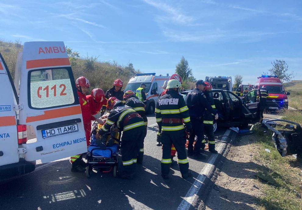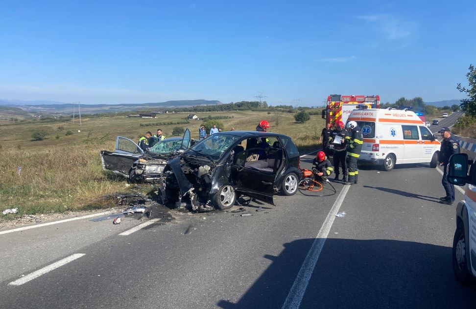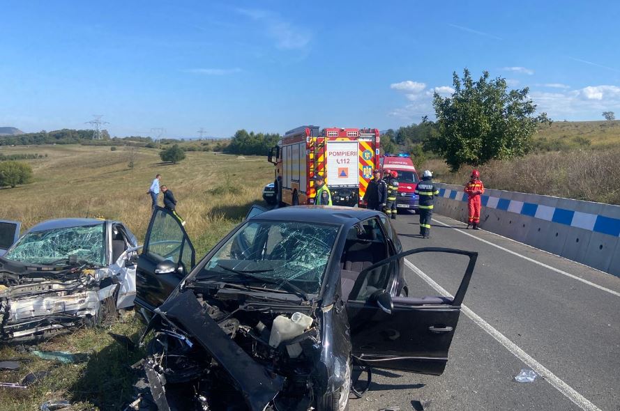 Impact violent între două mașini pe o șosea din vestul țării! Cinci oameni au fost răniți și transportați la spital.