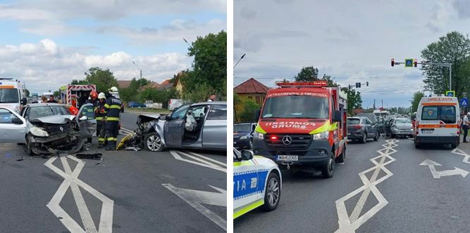 Din primele informații, se pare că o șoferiță a intrat pe sensul opus de mers și a lovit două autoturisme oprite la semafor. Unul dintre ele a ricoșat într-o altă mașină.