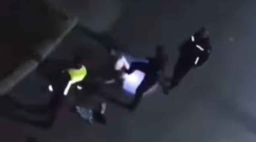 Întreaga scenă a fost filmată de un martor, iar in imagini se vede că, la un moment dat tânărul este așezat pe caldarâm și încearcă să se ridice.