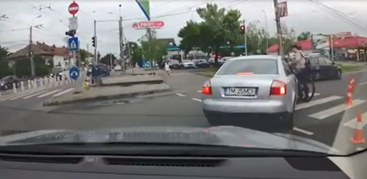Video: Biciclist lovit de o maşină, în Timişoara! Reacţia incredibilă a şoferului, după impact