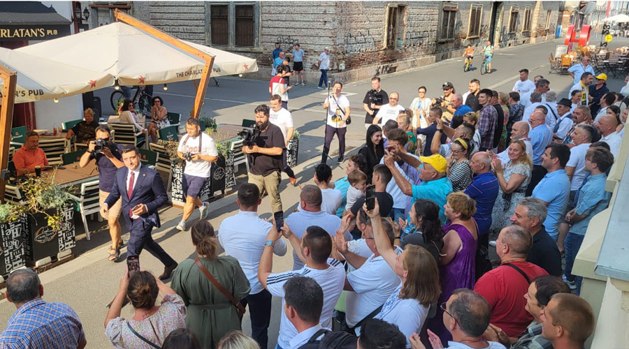 VIDEO: Coadă în faţa sediului AUR Timiş! Sute de oameni au venit să semneze contracte pentru locuinţele de 35.000 de euro promise de Simion