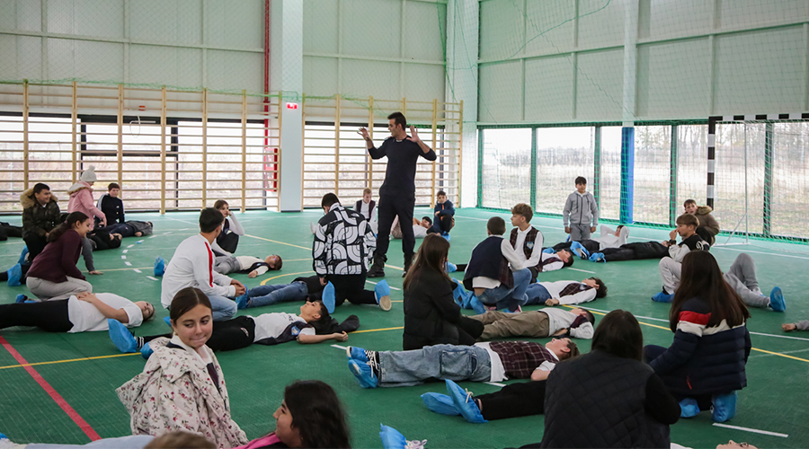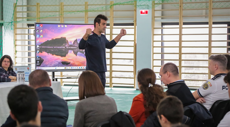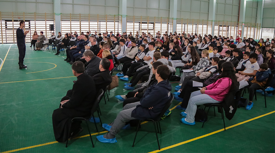 Aproape 300 de elevi din clasele V–VIII au umplut sala de sport din localitate, pentru a învăța cum să se ferească de pericolele lumii moderne.