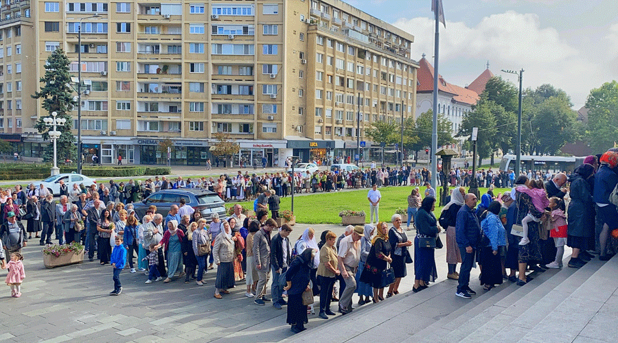 Credincioșii s-au așezat la rând, încă de dimineață, iar în acest moment, cozile au câteva zeci de metri.