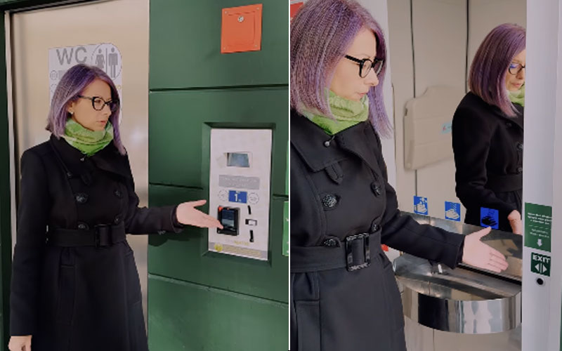 Astfel, în material, este explicat modul de acces în toaletă, pe bază de monede, dar și modul de funcționare al sistemului automatizat.