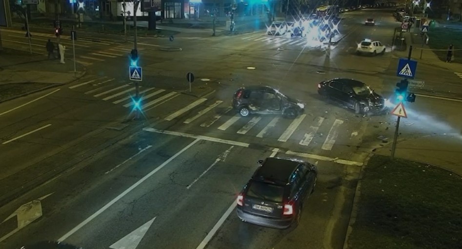 VIDEO Doi oameni răniți după ce două mașini s-au ciocnit violent într-o intersecție! Impactul a fost surprins de camerele de supraveghere