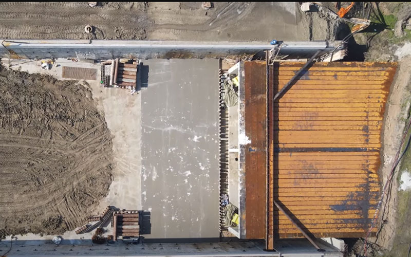 Împingerea chesonului a început pe 6 decembrie 2024 și ar trebui să fie gata la mijlocul lunii martie.