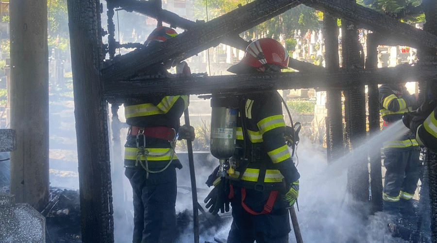 Construcția, folosită ca spațiu de depozitare pentru unelte și echipamente de către lucrătorii cimitirului, a fost cuprinsă rapid de flăcări, incendiul manifestându-se generalizat la momentul sosirii echipajelor de intervenție.