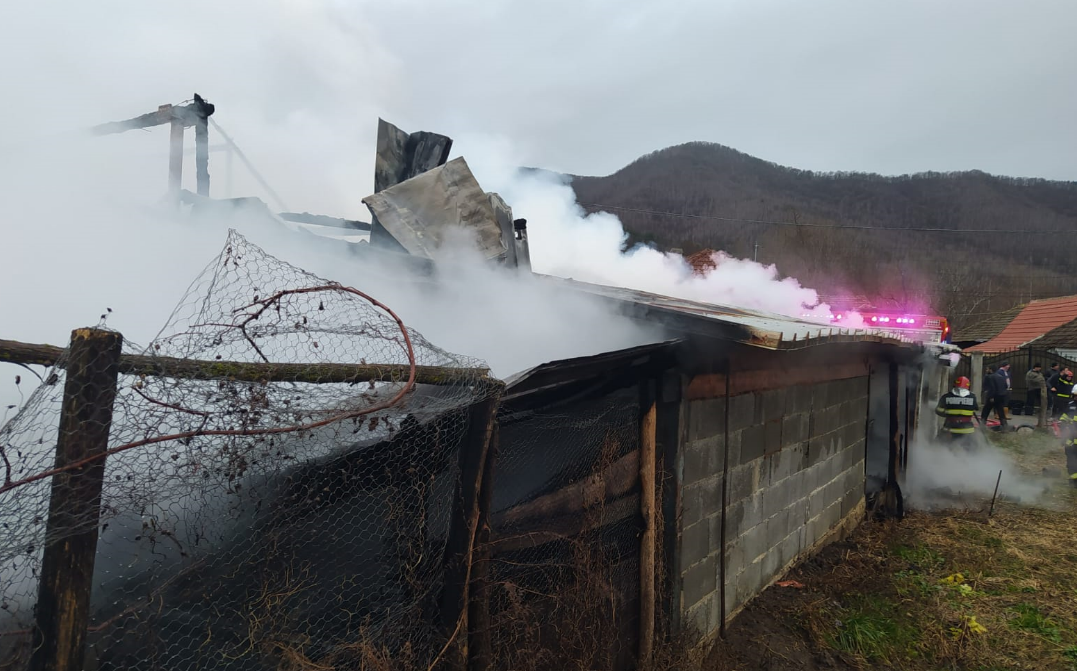 VIDEO: Incendiu violent într-o gospodărie! 20 de pompieri, dar și voluntari s-au chinuit să stingă flăcările, care au cuprins construcțiile casei și au ucis mai multe animale