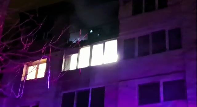 VIDEO Incendiu violent într-un apartament de la etajul patru! Proprietarul, scos din flăcări de către pompieri