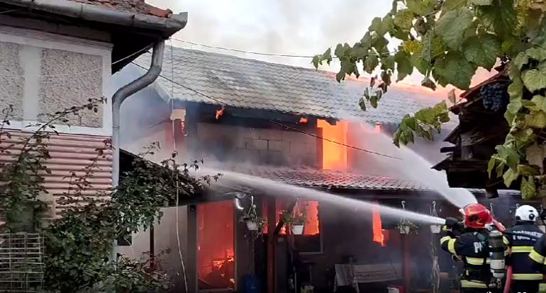 Până la sosirea pompierilor, flăcările violente au cuprins și acoperișul casei de lângă și amenința să se extindă la întreaga locuință.